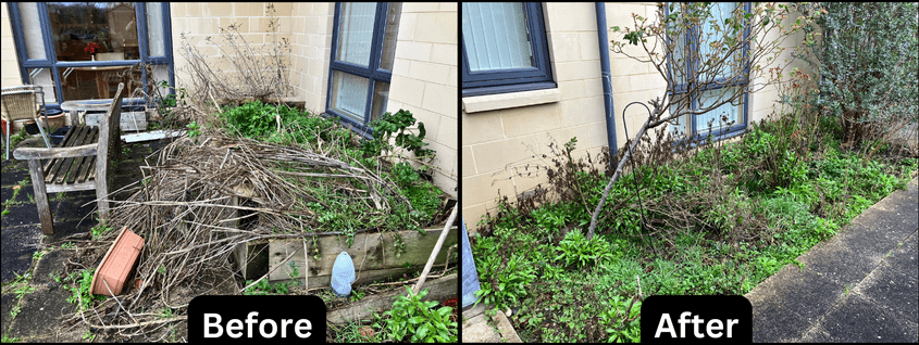Mark Beddis, Cory Mason, Keitan Li, and Lance Painter, assisted by Lee Feltham and Olly Taylor on the first day, worked tirelessly to restore the garden to a wonderfully clean and tidy condition. The neglected garden was completely transformed by the team's sheer hard work, even working through torrential rain on the second day.